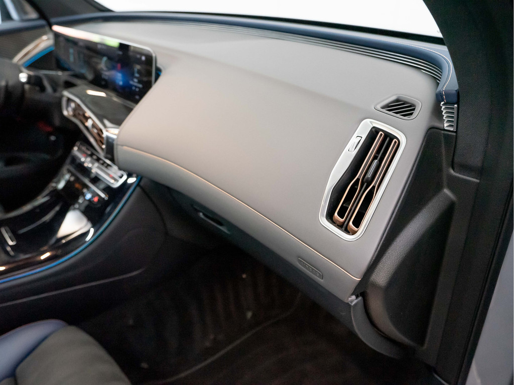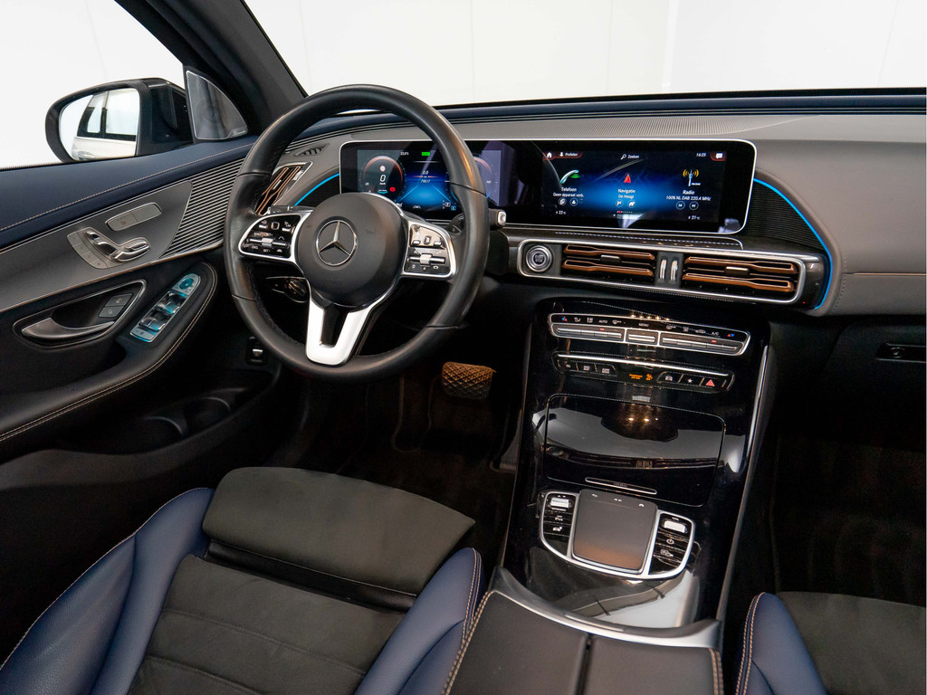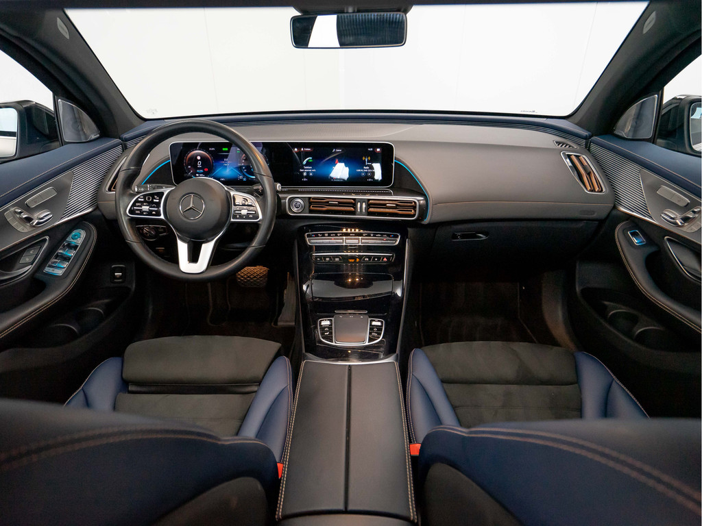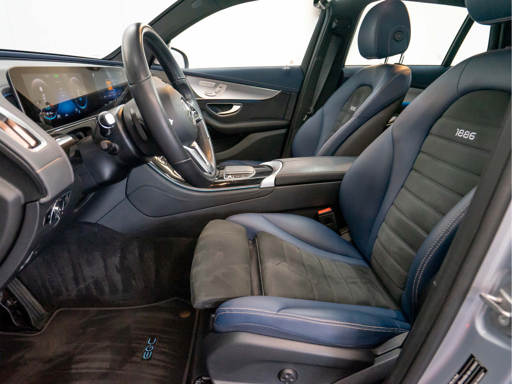 De exclusieve indruk wordt voortgezet in het interieur, bijvoorbeeld met het nieuwe stoeldesign met bekleding in lederlook ARTICO/microvezel DINAMICA in indigoblauw en zwart. In de rugleuningen is een speciaal opschrift ‘EQC Edition 1886’ gestikt. Dit opschrift is ook te vinden als badge op de middenconsole. De aandacht voor details wordt ook zichtbaar in de specifieke sierdelen in matrixlook zilver en de vloermatten met ‘EQC’-stiksel.