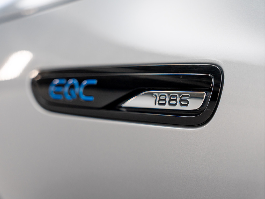 Tot de standaard uitrusting van de EQC Edition 1886 behoren zorgvuldig op elkaar afgestemde elementen in het exterieur en interieur. Voor een bijzonder exclusief karakter van het exterieur zorgt de grote Black Panel-grille met hoogglanzend zwarte lamellen en rand. De EQC Edition 1886 is uitsluitend leverbaar in de lak hightechzilver metallic. Tot de overige individuele kenmerken behoren het embleem in hoogglanzend zwart met speciaal opschrift ‘EQC Edition 1886’ op de voorspatschermen en de 20 inch tienspaaks lichtmetalen velgen in hoogglanzend zwart met witte decorelementen.